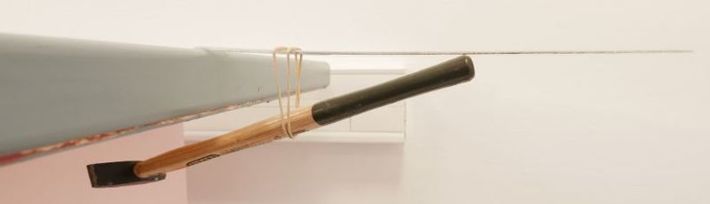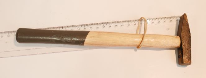 Si l'on ajoute au marteau la règle et l’élastique, c'est le même principe. La présence de la règle permet de laisser l'ensemble un peu plus loin dans le "vide".