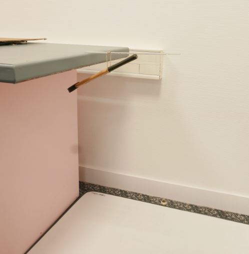 Le système Règle + marteau + élastique crée un ensemble-objet qui se trouve en équilibre sur le bord de la table.