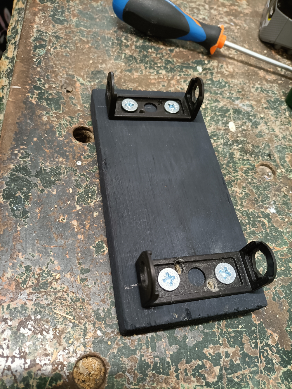 Prendre la planche et visser les équerres, une à l'avant et une à l'arrière (Photo 1)