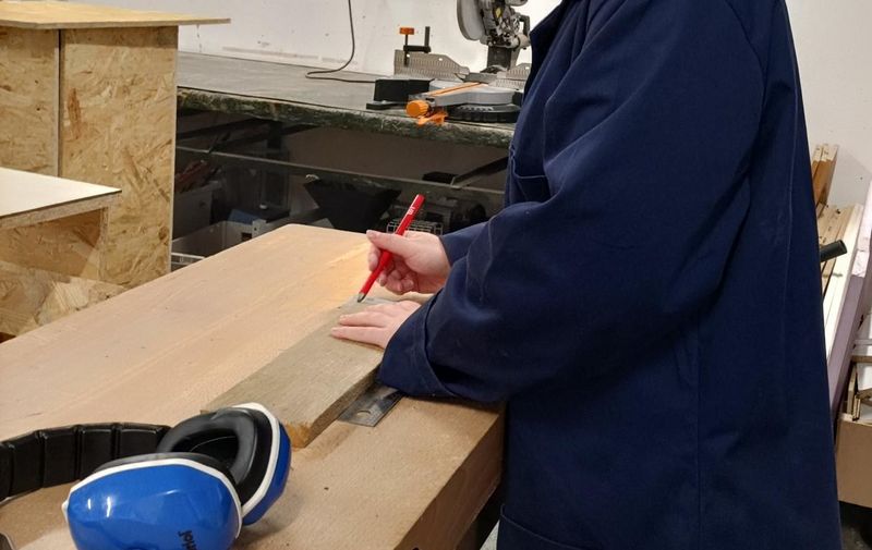 On découpe à la scie circulaire les planches