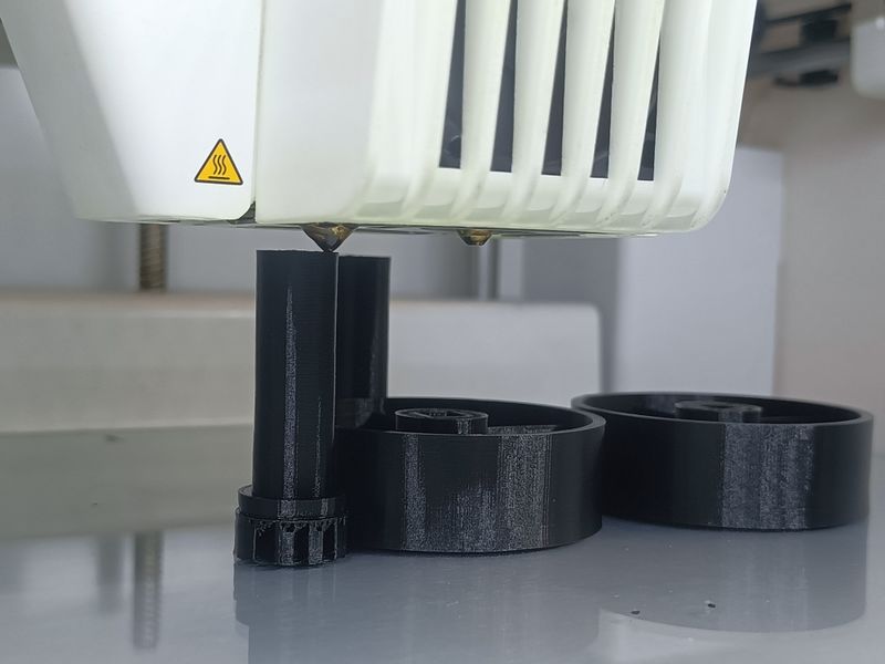 Le temps d'impression dépendra de vos dimensions, nous pour un axe de 10cm et 2 roues de 2cm de larges, nous en avons eu pour 1h30.